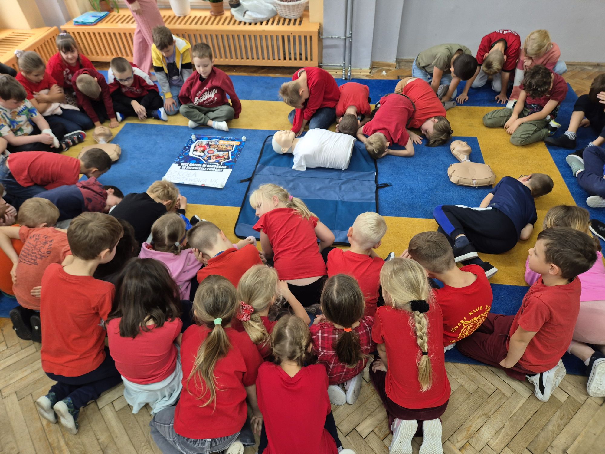 16 października obchodzimy Europejski Dzień Przywracania Czynności Serca. Z tej okazji klasy Ia, Ic, IIIc wraz z wychowawcami wzięli udział w biciu rekordu w pierwszej pomocy organizowanym przez Fundację WOŚP. Samo wydarzenie poprzedziła lekcja dotycząca podstawowych zasad udzielania pierwszej pomocy, a także zajęcia praktyczne. Dzisiaj od godziny 12.00 nasi uczniowie nieustannie prowadzili resuscytację krążeniowo- oddechową na 3 fantomach w ciągu 30 minut. Tempo uciśnięć wyznaczała specjalnie przygotowana do tego muzyka. Nasi uczniowie byli bardzo zaangażowani za co im serdecznie dziękujemy. Liczymy na to, że nasza wspólna praca przyczyni się do podniesienia świadomości na temat pierwszej pomocy oraz zachęci dzieci do nauki umiejętności, które mogą uratować życie!