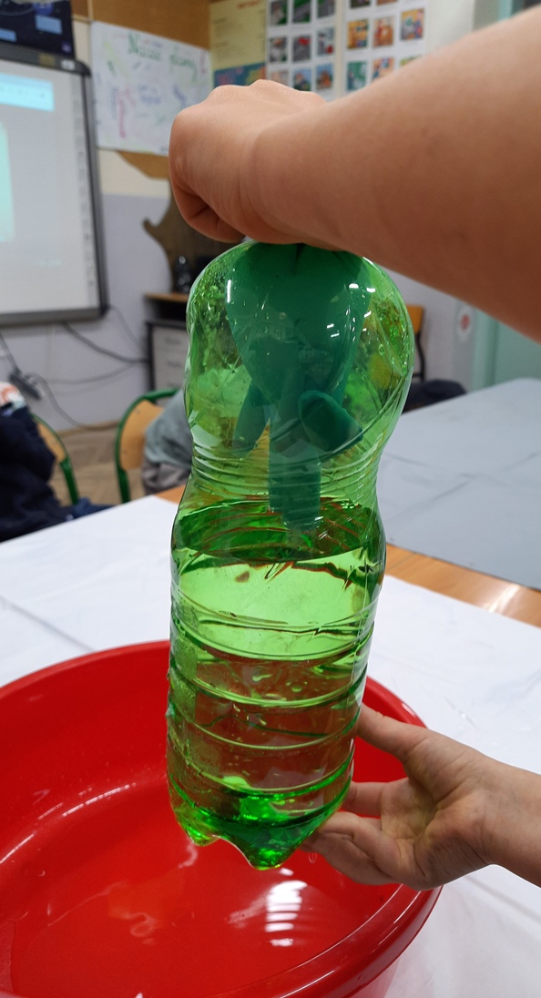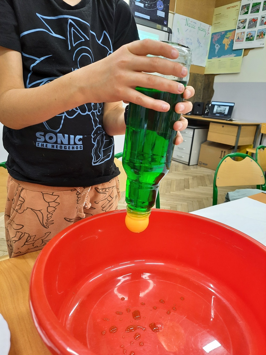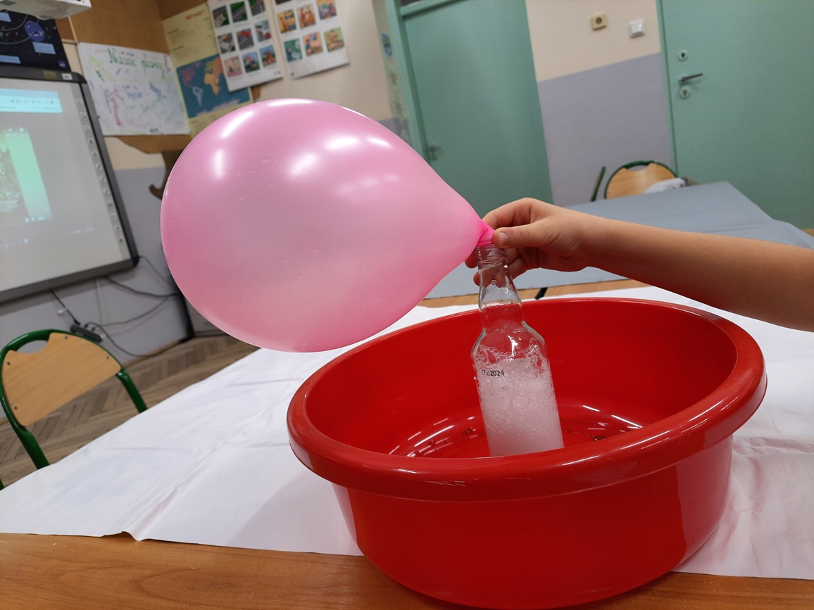 Kolejne zajęcia poświęcone obserwacjom efektów działania ciśnienia gazów. Mali Odkrywcy próbowali sami wyjaśniać, co wydarzyło się w każdym z tych doświadczeń.