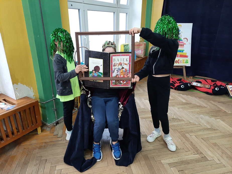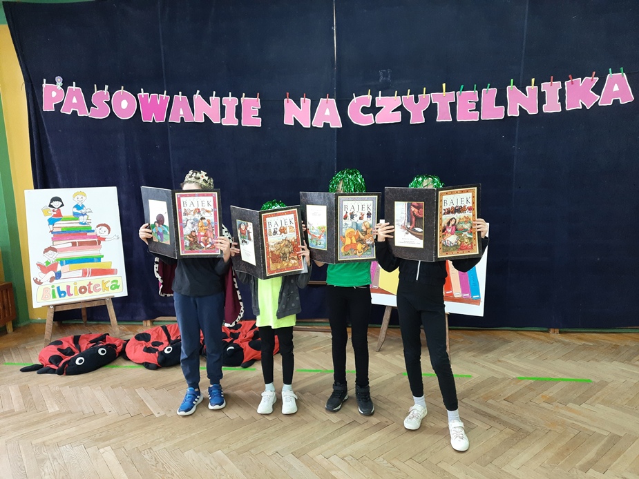 Na wstępie zostało zaprezentowane przedstawienie wprowadzające małych czytelników w świat bajek przygotowane przez uczniów klasy 3a pod opieką pani Moniki Pruszyńskiej. Pierwszoklasiści odgadywali także bajkowe zagadki, które sprawdziły ich znajomość bohaterów baśni. Po takim wprowadzeniu przyszli czytelnicy złożyli uroczyste przyrzeczenie, że zawsze będą szanować książki. Na pamiątkę każdy pierwszak otrzymał zakładkę, która będzie przypominała o tym uroczystym wydarzeniu. Większość zakładek wykonali starsi koledzy i koleżanki, natomiast projektowała je pani Beata Rudnicka. A teraz czas na lekcje biblioteczne i wypożyczanie książek przez nowych czytelników.