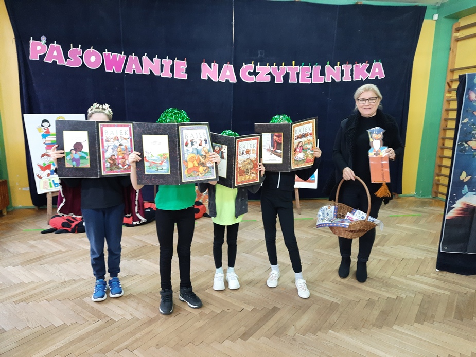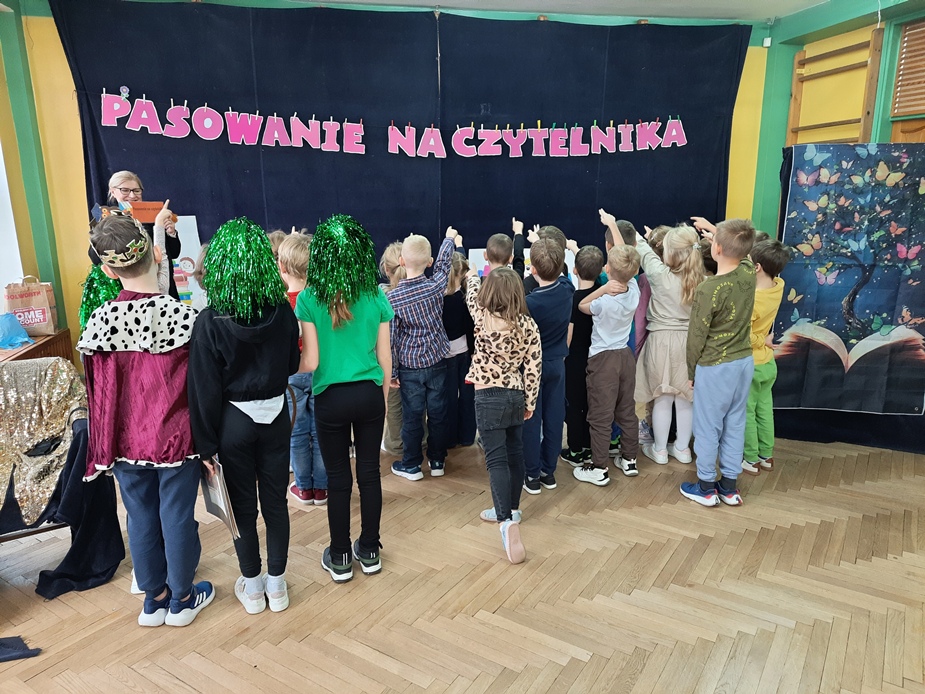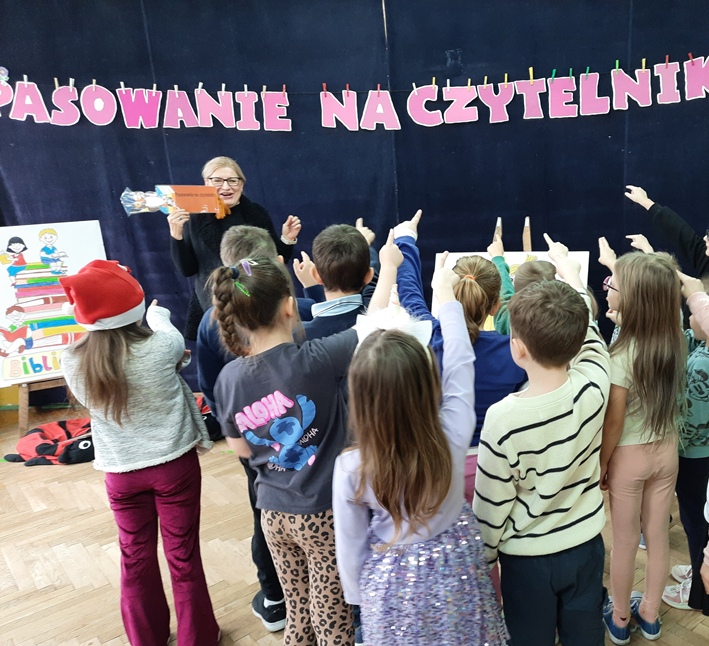 5 grudnia 2025 r. w naszej szkole odbyło się uroczyste pasowanie uczniów klas pierwszych na czytelników biblioteki szkolnej. Specjalnym gościem tej uroczystości była nasza pani dyrektor Marzena Nowakowska. Celem tego wydarzenia jest kształtowanie kultury czytelniczej poprzez zainteresowanie książką oraz pozyskanie nowych czytelników.