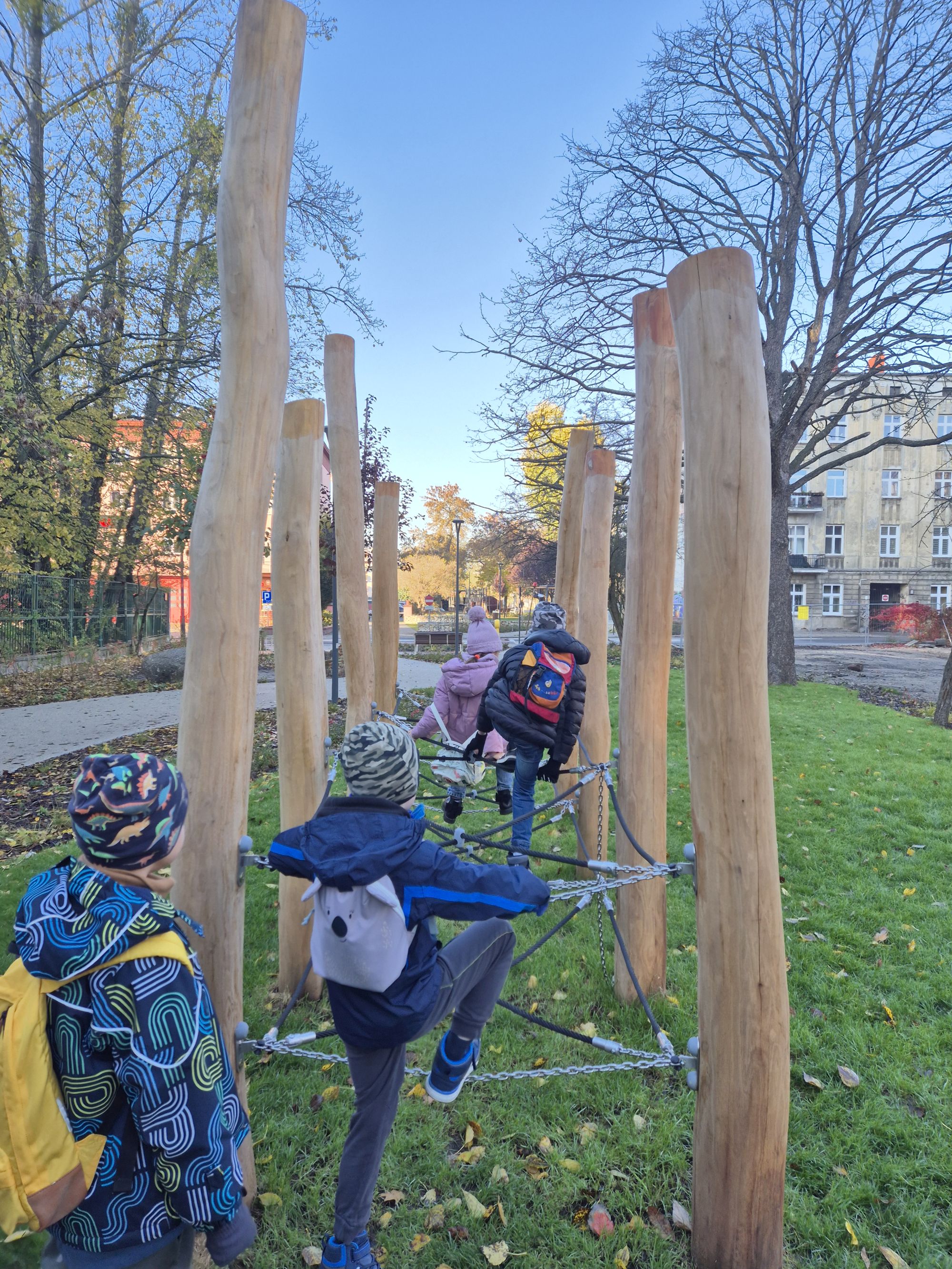 Podczas październikowej wędrówki nasi uczniowie odkryli nowe miejsce na mapie Łodzi: skwerek im. Lecha Kunki, położony przy ul. Wólczańskiej. Spędziliśmy tam miło czas: bawiliśmy się na placu zabaw, ćwiczyliśmy na plenerowej siłowni, poznawaliśmy park sensoryczny, podziwialiśmy ogródek warzywny oraz oglądaliśmy hotel dla zapylaczy. Kolejnym punktem naszej wyprawy był dworzec Łódź- Fabryczna. Oprócz zwiedzania dworca uczyliśmy się odczytywać tablice informacyjne i mogliśmy z bliska zobaczyć pociągi. W drodze powrotnej przeszliśmy przez Bramę Miasta, a naszą wędrówkę zakończyliśmy spacerem po parku przy ul. Sienkiewicza.